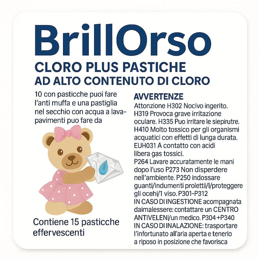 pasticche effervescenti di cloro plus , con una pasticca la si può usare come semplice candeggina per la Detergenza solo che e un po più forte, con 10 pasticche si può fare l anti muffa .